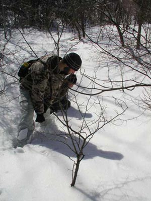 were sign of browse on the staghorn sumacs and an antler rub at